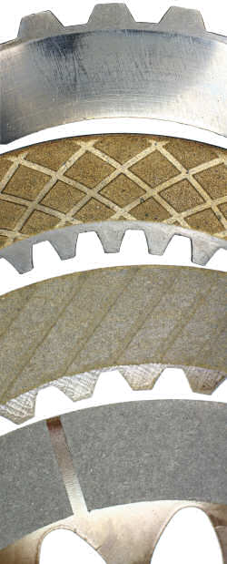 Bild 7 zeigt verschiedene Reiblamellen. In dem hier vorgestellten Lamellensperrdifferenzial reiben Stahllamellen aufeinander, die meist sehr kompakte Lamellenpakete erlauben. Zur Optimierung des Reibverhaltens werden aber auch beschichtete Lamellen verwendet, wobei in der Regel die Außenlamellen ihre stählerne Oberfläche behalten und die Innenlamellen beschichtet oder beklebt werden. Wie die Beispiele zeigen, erhalten die Oberflächen verschiedene Muster oder das Beschichtungsmaterial ist so teuer, dass es in kleinen Stücken mit Kanälen aufgeklebt wird (untere Innenlamelle). Jede Art von Nuten oder Kanälen verbessert den Ölfluss und damit die Kühlung der Lamellen.