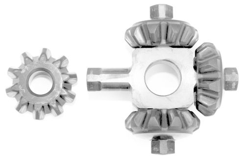 Bild 3 zeigt den Planetenträger, der hier vier Ausgleichskegelräder hält. In den meisten Differenzialen werden nur zwei Ausgleichsräder (Planetenräder) eingesetzt und diese werden nur durch einen einfachen Bolzen verbunden. Die Bauweise mit mehr als zwei Planeten bietet Vorteile beim Bauraum.