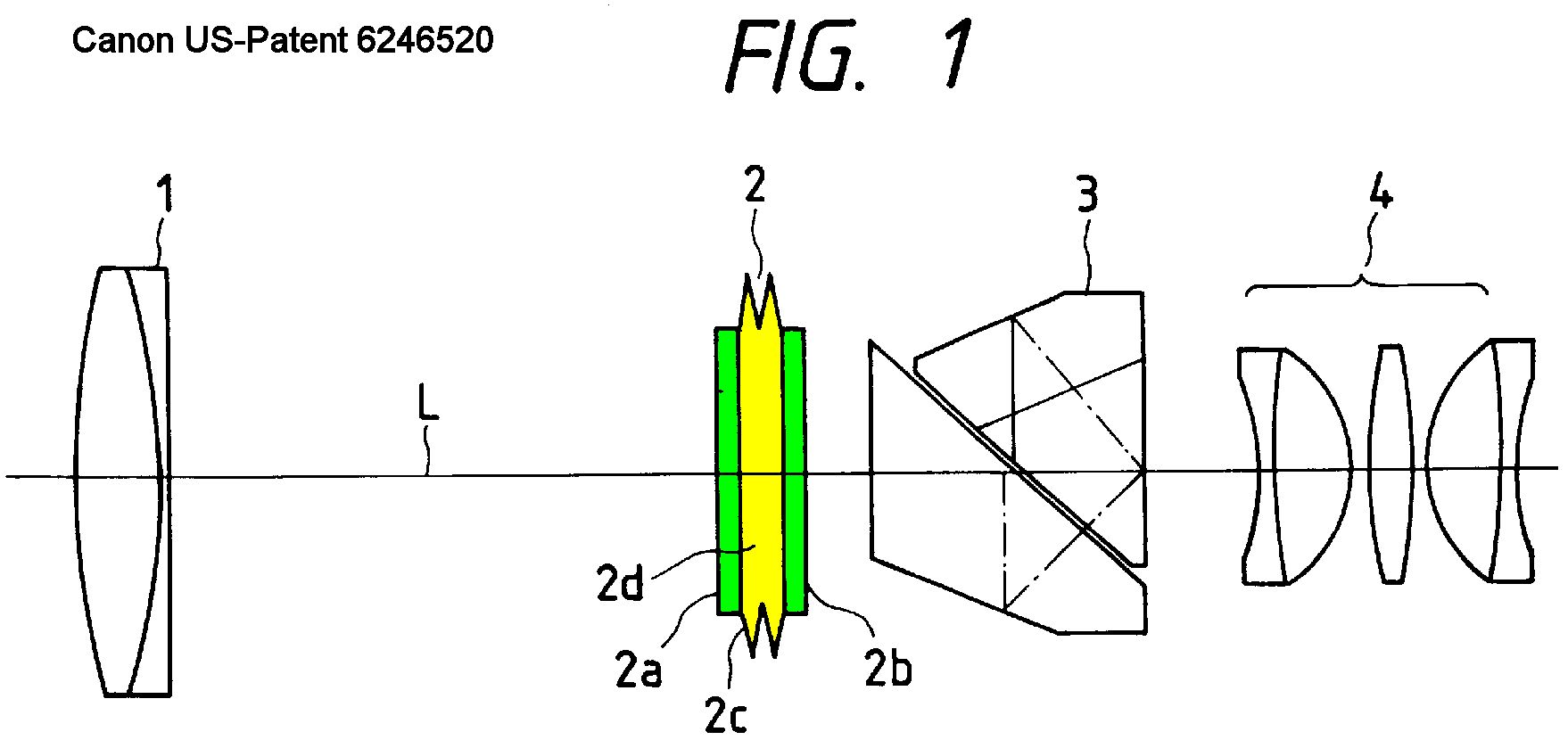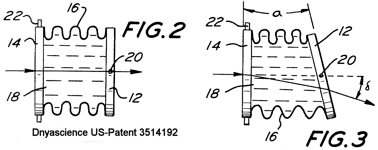 Die Basis der Vari-Angle-Prismen wird im 1967 angemeldeten Patent US 3514192 "Achromatic Variabla-Angle Fluid Prism" der Dynascience beschrieben, damals allerdings noch mit mechanischer Verschiebung der Glasplatten. Canon hat die Anwendung in Verbindung mit einer elektronischen Steuerung in Ferngläsern geschützt US6917470B2 "Optical Apparatus", daher stammen auch die Skizzen, die auf einigen versteckten Canon-Seiten ebenfalls verwendet werden.
