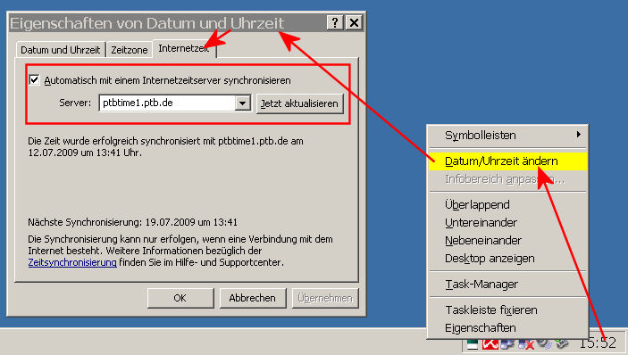 Besonders bequem ist die Methode, meine REG-Datei aus der ZIP-Datei zu entpacken und doppelzuklicken, dann trägt sie automatisch alle dre PTB-Server über die Windows-Registry in den Windows-Dialog ein und setzt ptb1 als Zeitquelle.