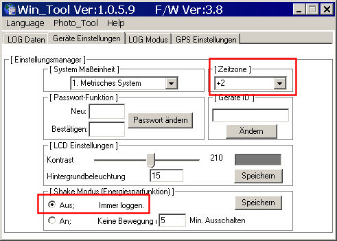 Damit der Logger alles wunschgemäß aufzeichnet, sind einige Voreinstellungen empfehlenswert. Bild 4 zeigt, die wesentlichen Einstellungen für das metrische System. Die Zeitzone ist für Deutschland und die meisten benachbarten EU-Länder mit +1 im Winter und +2 während der Sommerzeit anzugeben. Im Prinzip ist diese Einstellung aber nicht relevant, da GPS-Daten mit UTC aufgezeichnet werden und die Konvertierung auch im GeoSetter ausgeführt wird.