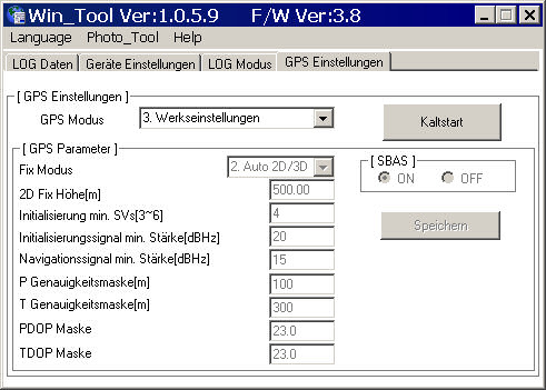 Bild 6 zeigt die GPS-Einstellungen. Gelegentlich treten in den GPS-Daten Sprünge von bis zu 100 km auf. Wenn dieses Problem störend ist, kann man es auf mehrfache Weise beeinflussen: